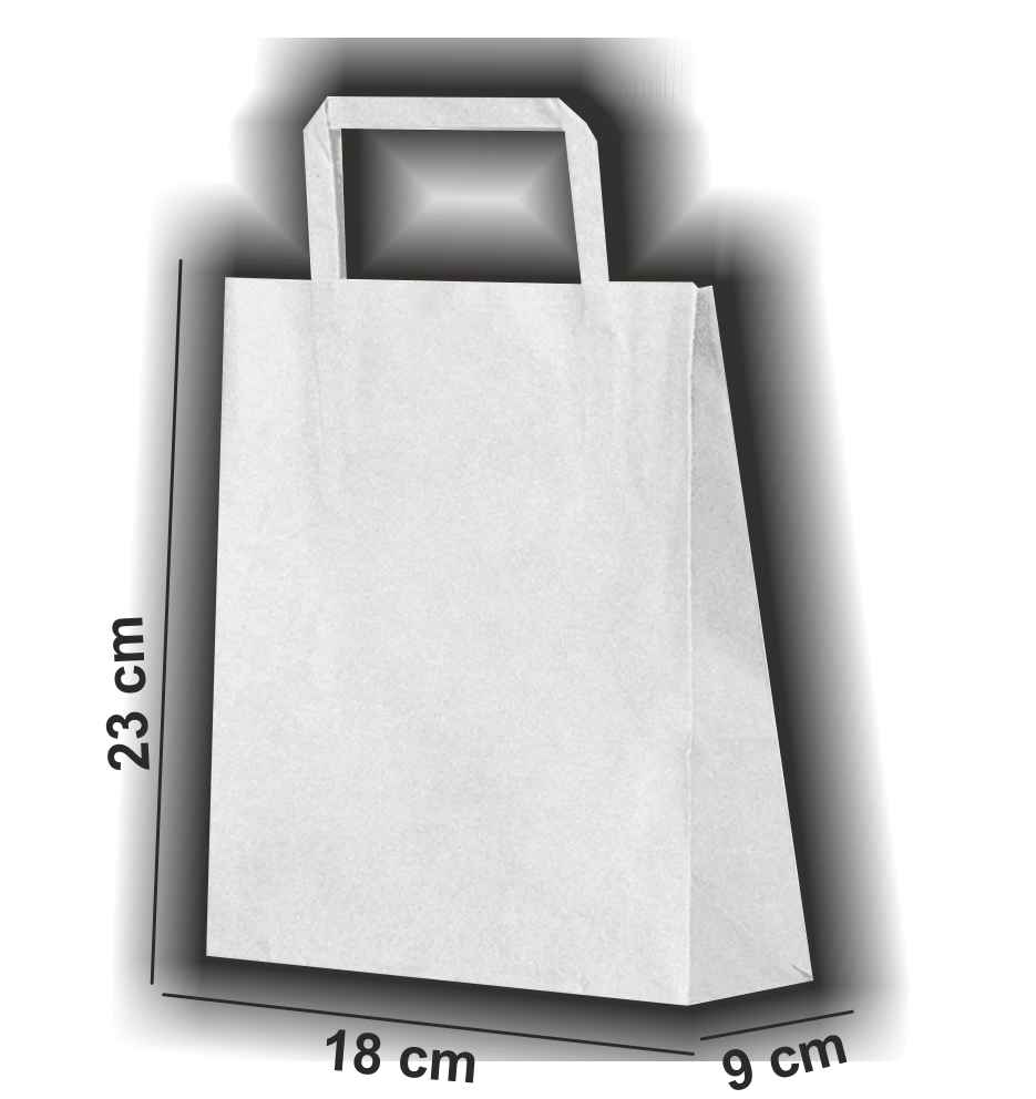 Düz Saplı Beyaz Kraft Poşet 18x23x9 cm